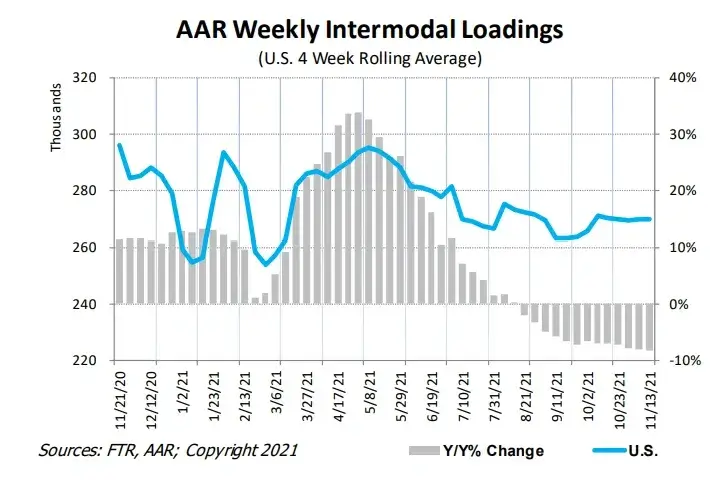As we close out 2021, overall Intermodal demand has weakened roughly 10% year-over-year. This story is an interesting tale of two cities as the Domestic volumes have increased 6% sequentially, while International volumes have declined 13% year-over-year and are down 2% sequentially.