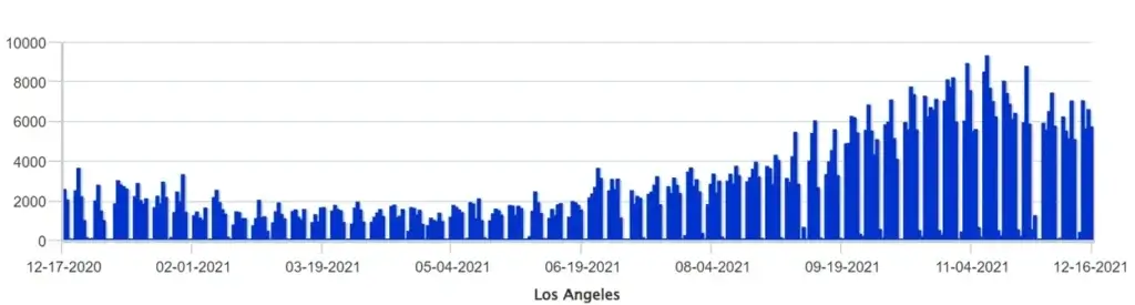 On the International product, many US ports continue to experience near record levels of imported containers. In a similar fashion, inland international terminals continue to struggle with congestion issues and slower than anticipated container deliveries to end customers, exceeding parking and chassis capabilities. Drayage demand for the Los Angeles metro area is shown below and has been gradually increasing throughout much of Q4 and has only recently begun trending downward toward expected seasonal levels.